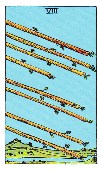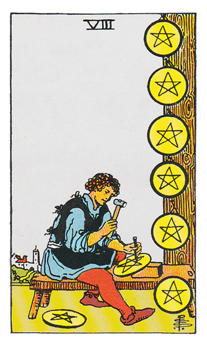 The intellectual and analytical aspect of Hod can also be seen in the prudence and discipline which can be developed at this level of consciousness. It is the level of the diplomat and the sphere of intrigue. Here lies the belief in self-preservation and even deceit. The prudence and scepticism are reflected in the tarot cards assigned to Hod, the four eights, all of which suggest an element of restraint.