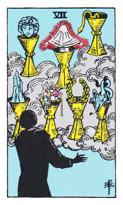 The four Tarot cards assigned to Netzach are the sevens  and reveal the nature of the Venusian influence as it comes down the planes.  They teach a very important lesson for they show how unstable this force is unless  it is rooted in spiritual principle. The lower forms of love are the emotions  and essentially unreliable; but the higher love is dynamic and energising.